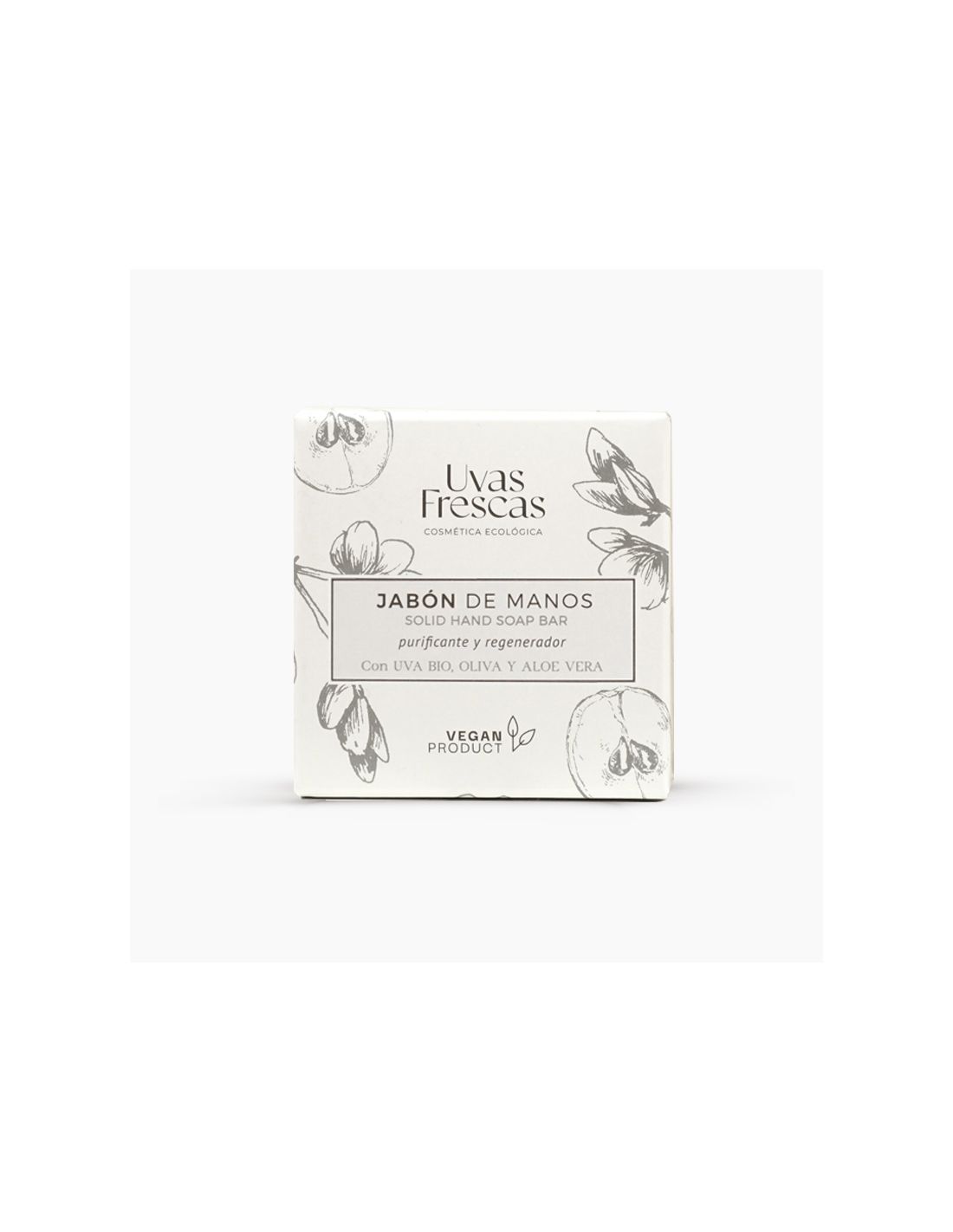 Jabón natural y artesanal elaborado con Aceite de Pepita de Uva y Oliva, con pulpa de Aloe Vera, cuyos componentes tienen reconocidas propiedades de regeneración y revitalización de la piel.