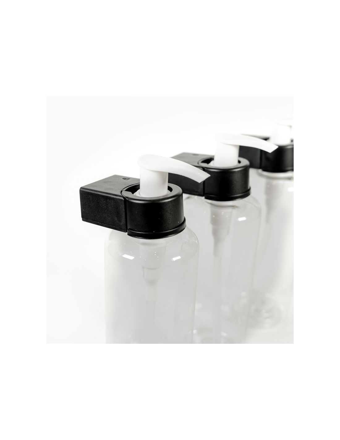 El mecanismo de bloqueo evita que la botella sea retirada del soporte, y la función antimanipulación impide que la bomba sea desenroscada mientras está montada en el soporte.