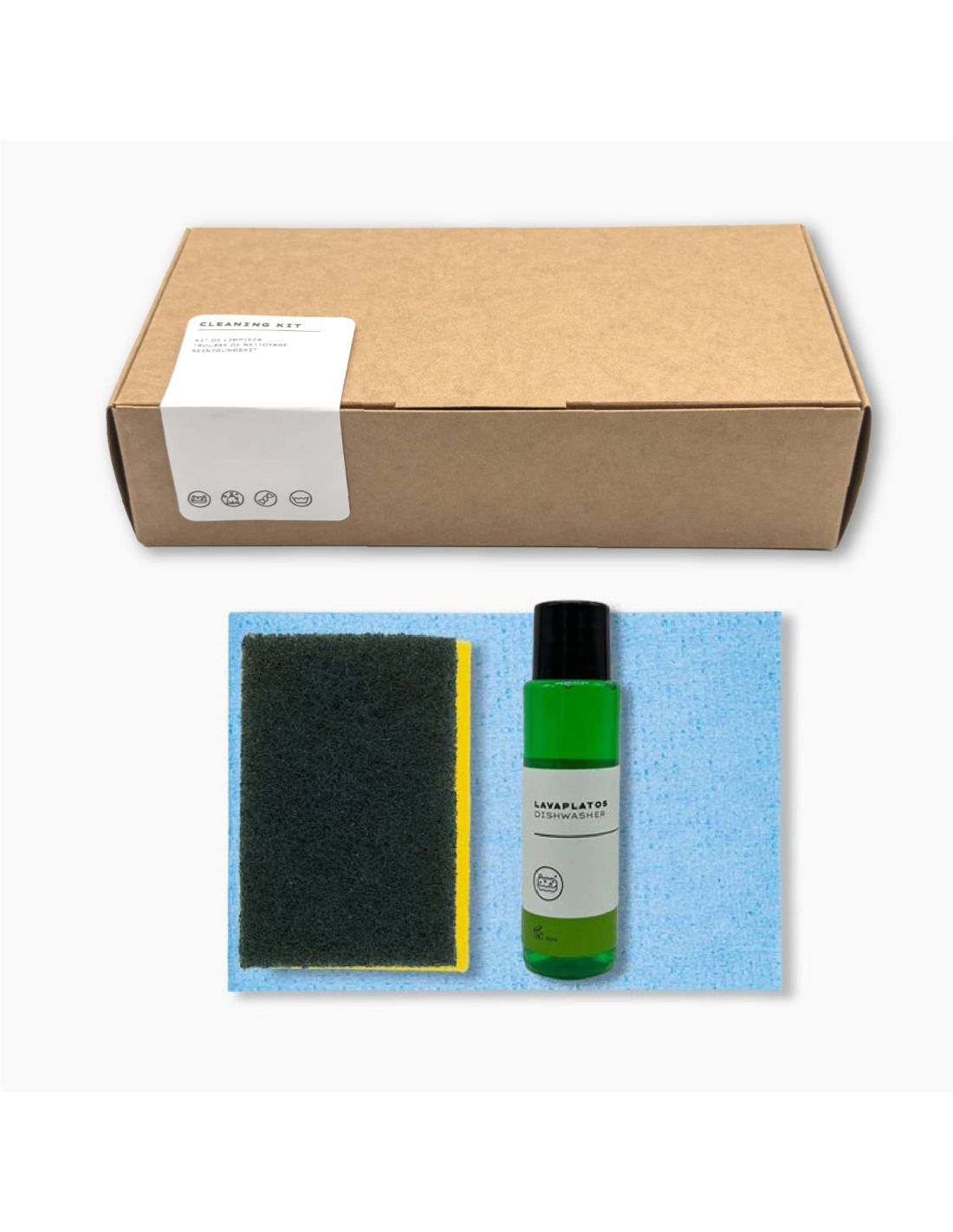 Kit de limpieza con todos los utensilios y productos necesarios para la cocina. Ideal para casas rurales, bungalows, apartamentos turísticos y apartahoteles.