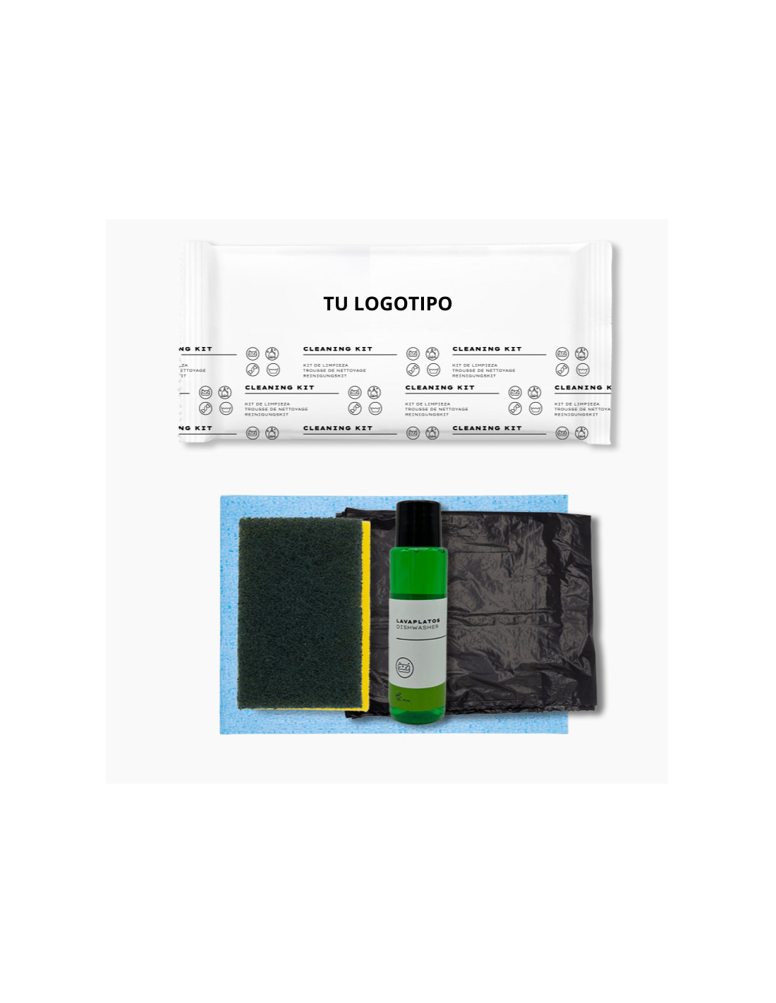 No olvides guardar tu personalización para poder agregarla al carritoKit limpieza apartamento y cocina: bayeta, salvauñas, lavavajillas y bolsa de basura - Amenities Mirahostel